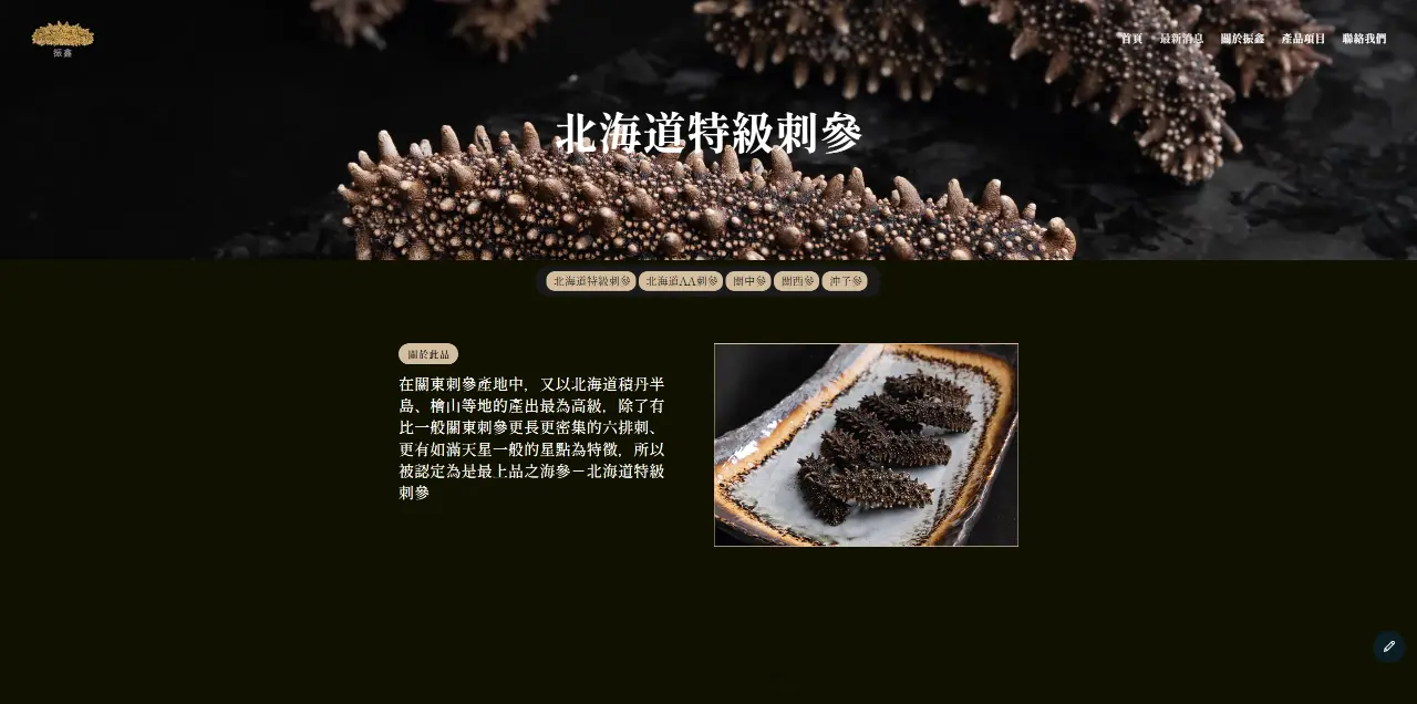 此案例為典型的傳產貿易公司,主要產品為進口海參,作為外貿需求,需要正式的官網展示產品。